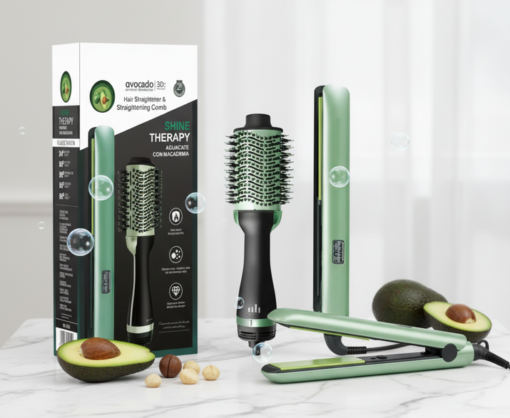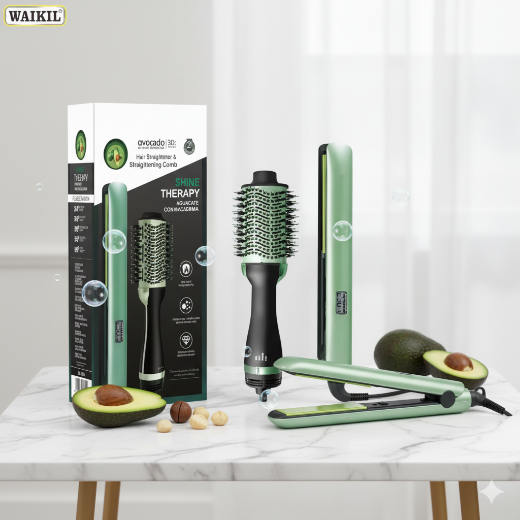 Transforma tu rutina capilar con un dúo que nutre y estiliza, combinando el poder natural del aguacate y la macadamia para un cabello saludable, liso y brillante, sin maltratarlo.